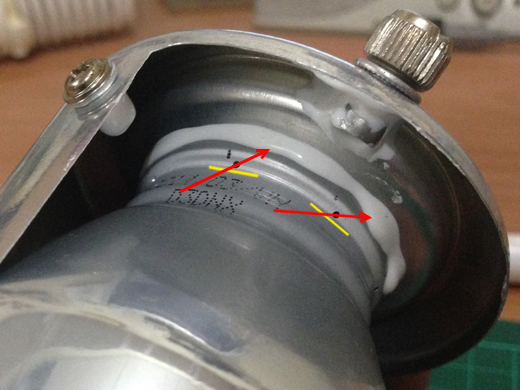 結果在壓合內外爐壁時, 外爐壁硬生生的由下緣支架孔裂開…