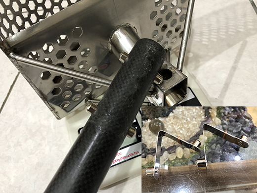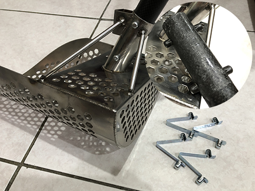 剛開始, 用M6羊角螺絲來固定鏟柄(沙鏟孔7mm),