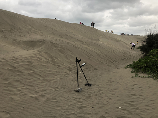 岸邊的乾沙灘上, 還能用定位棒找到目標… 再用手鏟慢慢挖開..