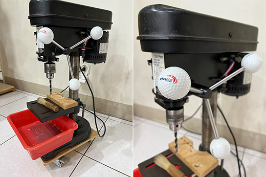 翻了翻手邊的材料, 做了個簡易鑽台靠山..