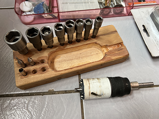 能打出垂直的孔位後, 就可以拿邊角料做收納座了…