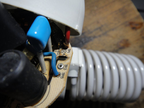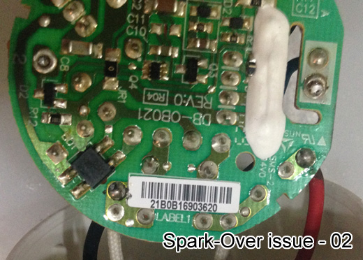 如果AC電源腳(TP1)裸線太長, 會與燈管腳(TP3)造成跳火..