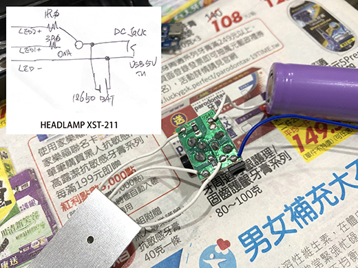 這件頭戴式照明 XST-211 的電路, 簡單到不能再簡單…