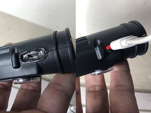 使用半透熱熔膠, 將充電板指示燈導到接口, 封好..