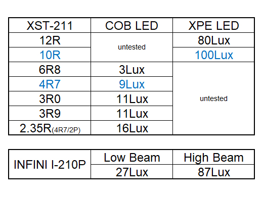 把 XST-211 和 I-210P 的地面亮度記錄下來..