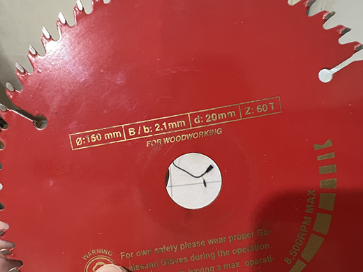 以這片木工鋸片為例, 建議的最高轉數是8500轉..