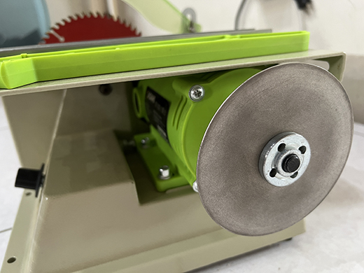 大多數鋸檯都是透過皮帶或是減速輪, 降低鋸片轉數..