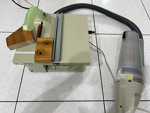 裁切木片時.. 木屑終於比較不會滿屋子亂亂飄了..