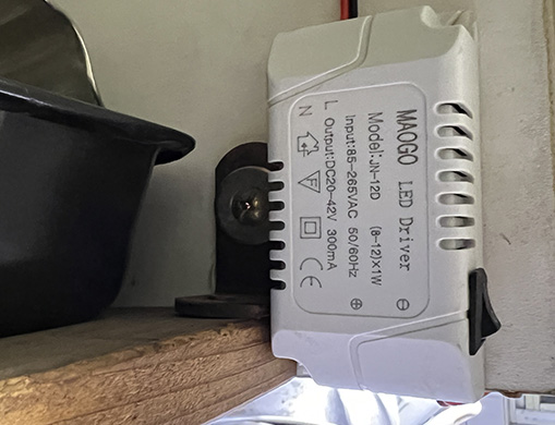 LED Driver的外盒, 剛好開孔塞進一個開關..