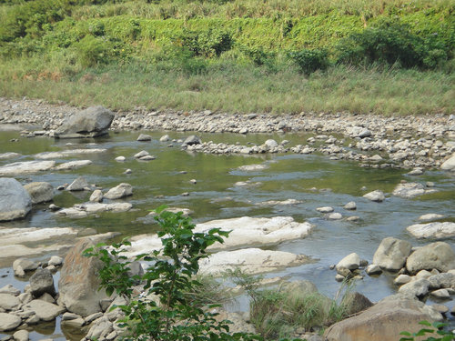 抓住夏天的尾巴 2012-09-13 尋金探礦 中秋還沒到, 清晨出門時已經能感受到涼意~ 酷夏接近尾聲… 能全盤下水的日子不多囉~ 幾個颱風沖涮後帶來的新沉積處… 幾乎已經被翻遍… 原點下潛了幾次… 找不著能接續作業的點…. (汗) 雖然沒能找到大標本… 但今天的成績也算是不錯了!! (樂) 對了… 不知道是不是牛眼花… 回程時… 似乎看到對岸的梳子壩旁邊有 比基尼妹 ….? — 2012/09/14 水位由 61.03 >> 62.38 漲了一公尺多.. 河邊活動請務必小心!!