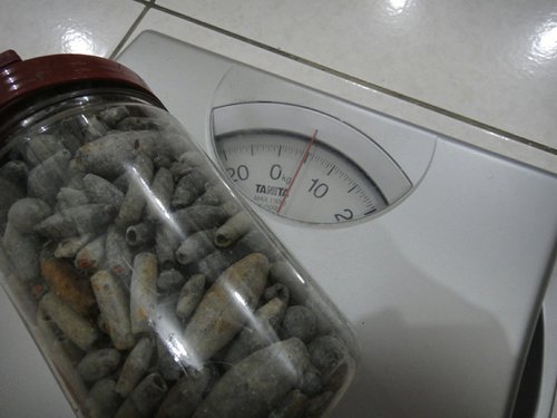沒多久的時間, 又撿了五公斤多的鉛塊…