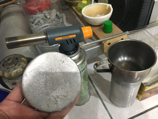 天氣冷.. 跑到頂樓玩火, 把剩下的鉛塊全熔掉…