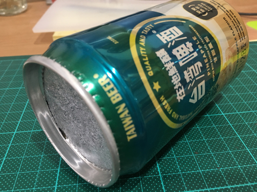 鉛水灌到330ml的啤酒罐內後, 就成了一支4Kg的啞鈴了… 吽~