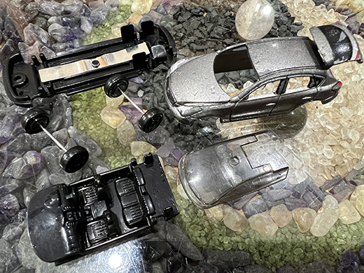 拆解清理小車車 2024-02-14 金屬探測 在公園、沙灘… 總是會掃出一些小車車.. 剛剛被埋到忘記的.. 清水洗洗後就能回收.. 埋太久的… 大多都嚴重鏽蝕.. 回天乏術.. 填滿草根、泥沙的.. 就得要拆車才能清理.. 車底的卯釘用4mm鑽尾掃過, 就可以將車拆開.. 清理組合後, 卯釘接合處再點上快乾膠加固.. 整理好的小車車… 會收集後一起捐出去.. 期望車車下次能遇到疼惜它的小主人! 哞~
