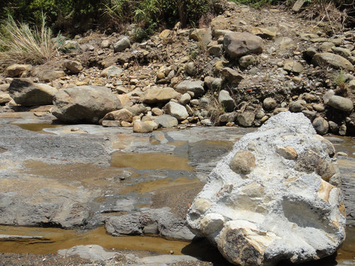 下切河床的邊坡, 被這次的大水削走了大一片!!