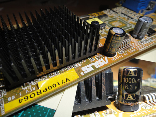 也就是說.. 這片 ASUS V7100PRO64 之前維修搞錯電容極性…