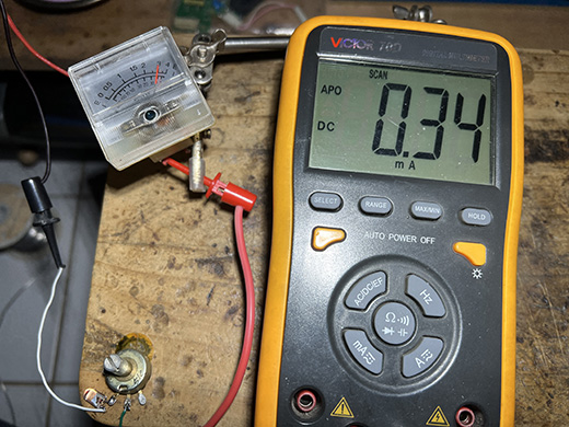 比對錶頭指示和數位電錶的電流量測值,