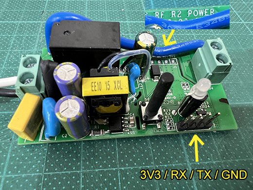 * SONOFF RF R2的TX/RX與USB-TTL TX/RX直接對接