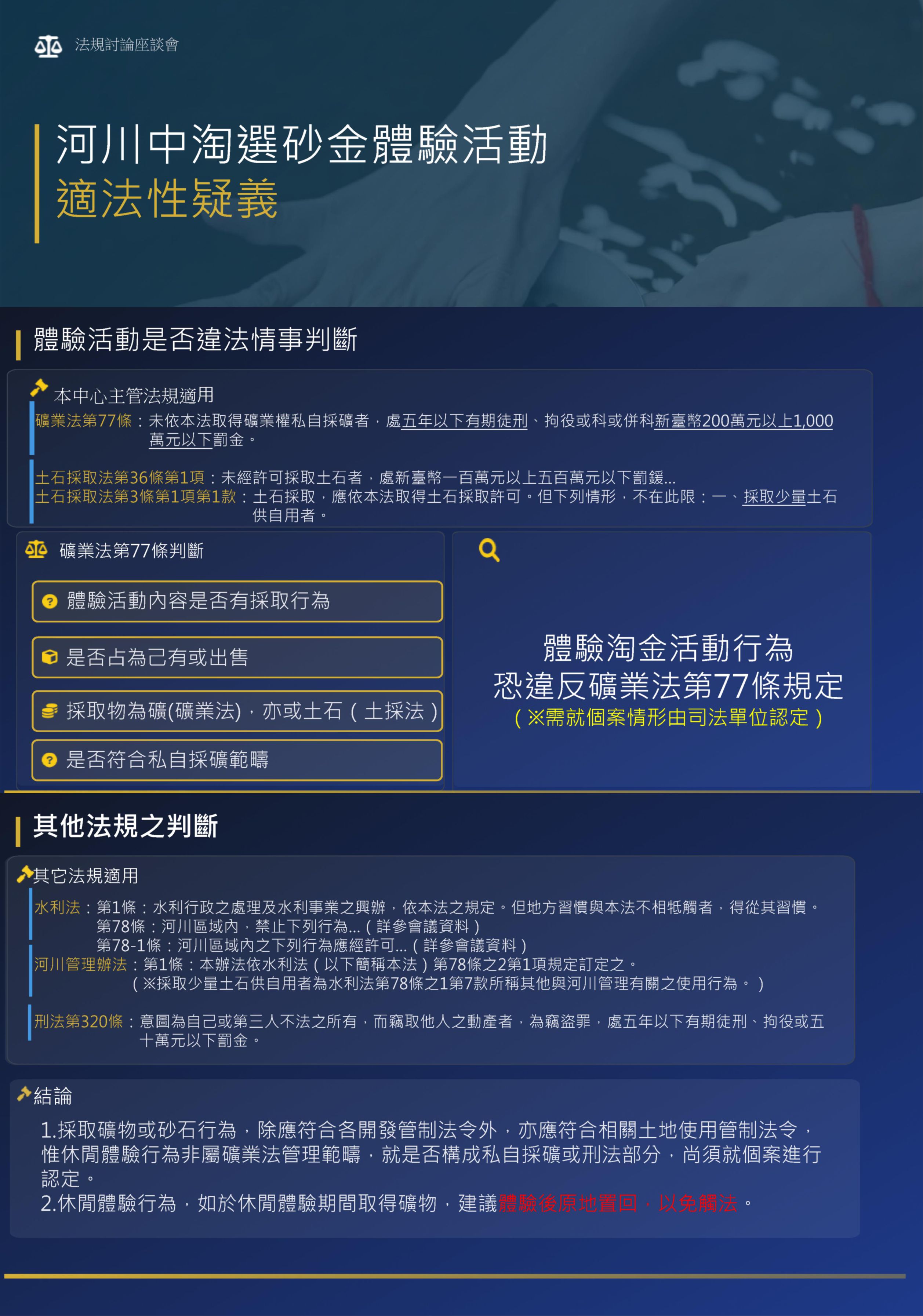 參與 河川中淘選砂金體驗活動 適法性疑義座談會