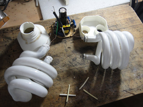 一般來說, 省電燈泡大多數是由 驅動板/燈管 二個主要部件構成,
