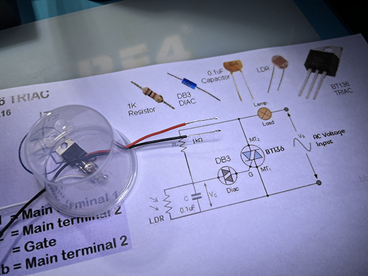 本來想用手邊堆的TRIAC+DIAC, 做個光控電路..