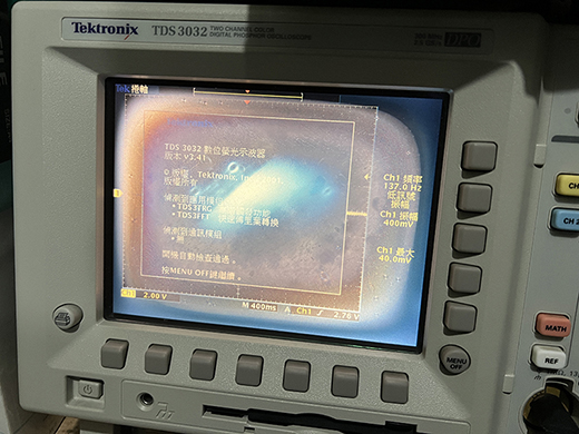 才發現… 示波器的偏光膜已經嚴重變質了..