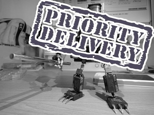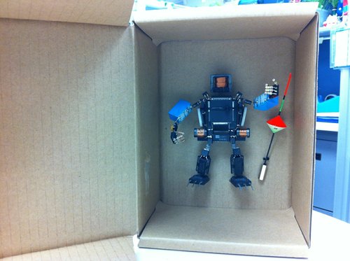 拆件機器人十號 2011-11-20 手創製作 練習用熱風槍時, 除了MOSFET, 也拆下了不少晶片… 由於晶片塑不出我想要的感覺, 所以一直沒拿來應用… 這天~ 亂湊亂黏的拼了個身體… 加上手腳後… 更像人型了!! BR-10 (Boring Robot No.10) 十號算是暫息之作… 十一號?? 隨緣了!! 吽~ — 2013/02/07: 將十號打包, 送給了合作多年的廠商囉~