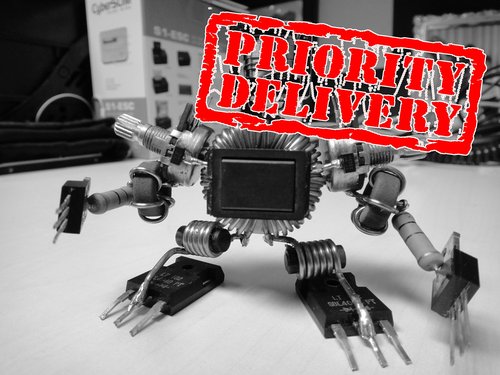 拆件機器人九號 2011-11-17 手創製作 從公司帶了顆壞的ATX電源供應器回來拆材料~ 廢板上有好多顆牛愛用的電感線圈元件… 噹噹!! BR-9 (Boring Robot No.9) 一顆報銷的ATX電源供應器, 材料應該可以做出二隻小人… 一隻創作小人如果賣個幾百元… 應該比送去回收划算吧!! 吽~ — 2011/11/22: 小九交由格友 化石狂 認養…