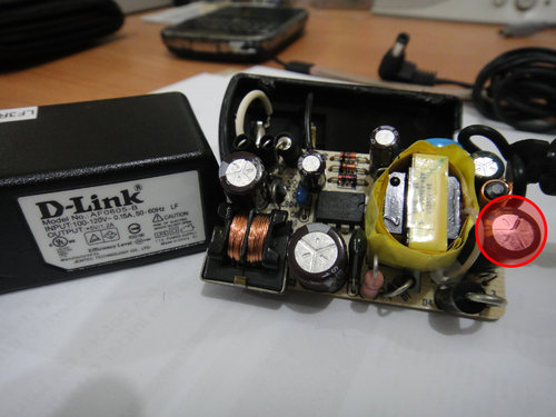直流變壓器維修 2011-11-10 資電維修 中午接到老客戶的電話說 “D-Link DI-604 IP分享器有問題”… 拿到東西後… 一直到剛剛才打起精神修理它… 是的, 又是電子式變壓器的輸出電容出了狀況… 輸出端的 680μF/10V 電容鼓包, 置換 680μF/16V 電容後… 完修… 在連日低溫豪雨不斷, 工作怠滯不前, 鼻竇炎又發作的情形下… 斷斷續續請了二天假龜在家中… 該是重整腳步再次振作… 準備重回杜鹃窩了… 吽!