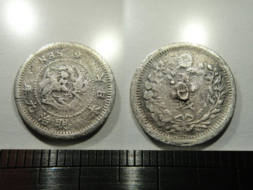 這天, 找到了這一枚 明治九年 五錢 小銀幣