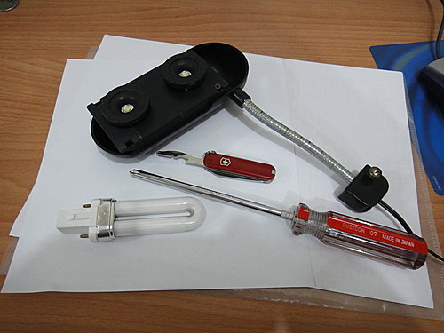 隨手找了些能用的材料, 拼裝出一件魚缸照明燈.