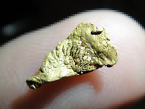 基隆河の自然金 2011-02-16 金礦標本 泡在河裡找金金… 已經好一段時間了… (還差五個月就滿二年) 雖然說… 大金金才是牛的主要目標… 但是~ 能找到特別晶型的金金時, 其實也是快樂的!!! 大藍の首次出征 牛找到了一粒片狀羽毛金… 前一陣子, 牛找到了這一粒…. 不會形容的小金金… 由於表面上根本找不到石英… 牛一度認為它是人造物… 背面也有葉狀晶型~ 本件標本: 高11mm, 寬6mm, 厚1mm (樂)