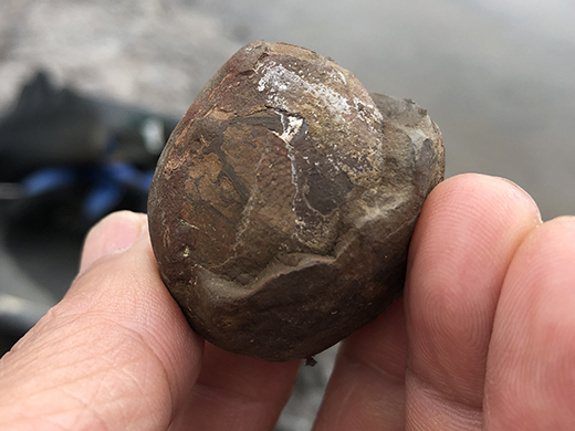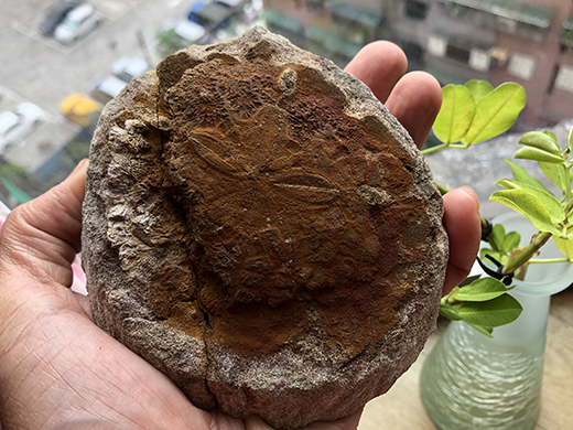 這顆是在頁岩岩床上(結核)的裂星海膽..