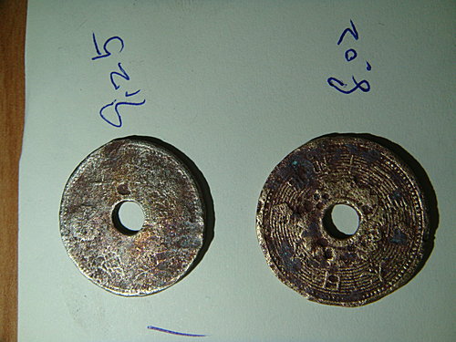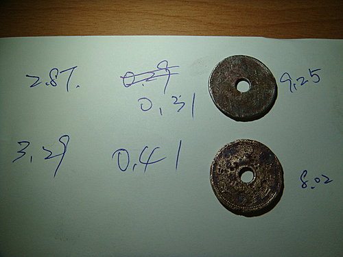 大正是較白的, 實重2.87g 水秤0.31g, 比重9.25 >> 近似於白銅