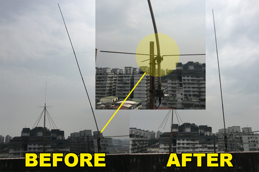 CB天線, 被尼莎颳風(07/29)給掃歪… 而且還斷了一支地網!