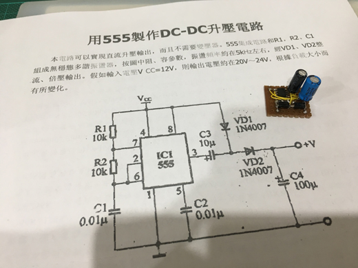 網路上找到555昇壓電路, 剛好所有的零件都拆得到…