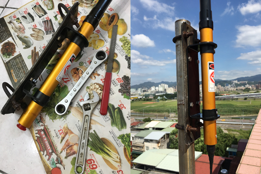 新天線的管架夾小了一號.. 沒辦法直接鎖到原本的管架上…