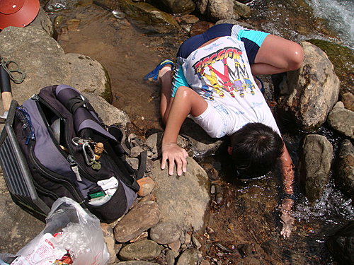 雖然在河邊摔了幾次, 也沒看到有 “好無聊~ 想回家~” 的意思~