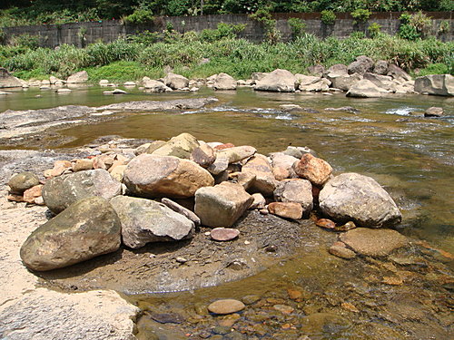 堆石頭砸自己手 2010-08-23 尋金探礦 上星期像隻水獺般… 放空自己搬石頭 搞了這一堆… (2010/09/04 被大水沖掉了~) 這天~ 為了清一條溝縫… 不小心搞垮了側邊的石頭…. 左小指好死不死的直接被一粒大石頭壓到… 在沒有施力角度, 也推不開石頭的情形下… 祗好硬將手指從石縫中拉出來…. 手指是拉出來了… 但也整整的脫了一圈的皮…. (超痛) 好家在有戴 KleenGuard G60 手套… 不然… 應該就不只是破皮這麼小條…. 左小指到現在還在麻…. 吽~!
