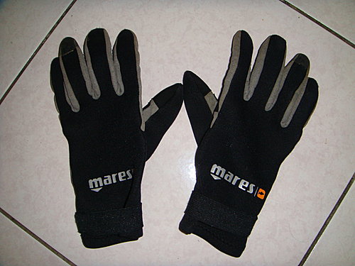 為了能放心的在水底下清理石頭, 牛添購了Mares潛水用手套.