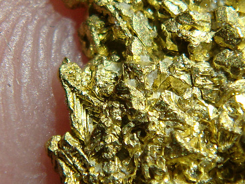 這一顆標本, 表面上多處可以觀查到自然金的晶體型態…