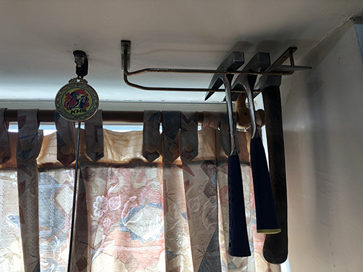 30年前買的高腳杯架(鎖件式)換個方向鎖, 就可以掛錘子了~ 吽!!