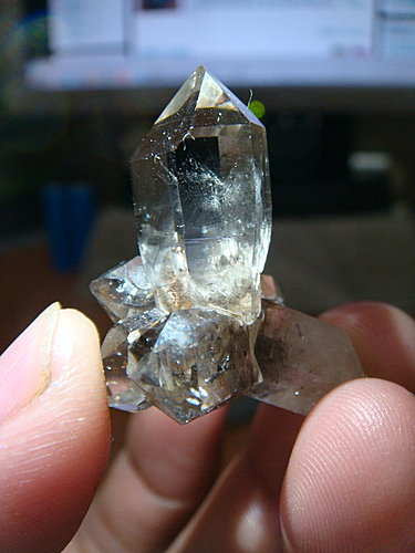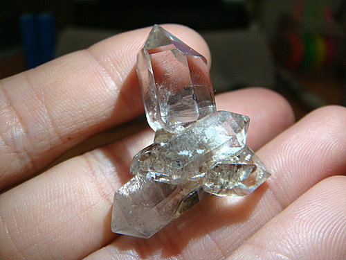 多頭の雙尖水晶 2010-04-01 岩礦標本 收到這顆水晶之前, 其實已經有看過相片… 但當拿它在手上把玩的時候, 還是被它的可愛迷住… 多頭雙尖水晶, 產地: China 小小的晶簇是由三支單晶還有二支雙尖晶所構成 在巧妙的組合下, 這顆小水晶可以直接平穩地擺放觀賞… 這陣子收的水晶, 有一小部份 加工の自然晶柱 已經陸續轉送給愛晶人… 身邊的朋友們, 也都分享到源自於礦友間的 “神秘友誼” 了…. 吽~