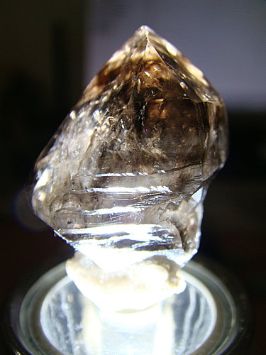 放在手電筒上打光…. 晶柱內有好多美麗的天然冰裂…
