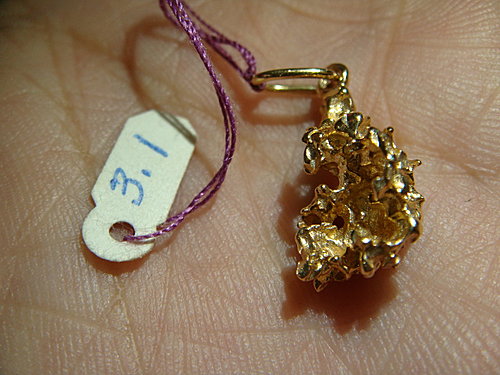在eBay上, 常看到有人標售由塊金做成鍊墜/耳墜/胸針….