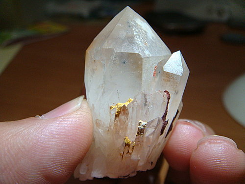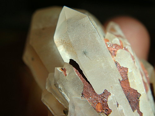 而且表面上共生了鐵類礦物… 柱體是白色的, 又不通透!