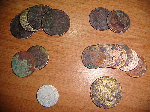 還有2枚磨損嚴重的日本錢, 一枚美金, 二枚破損的孔方兄……