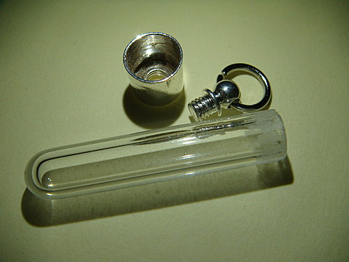 在未黏合鎖蓋前, 玻璃內管約可置入約3.5mm寬的砂金,