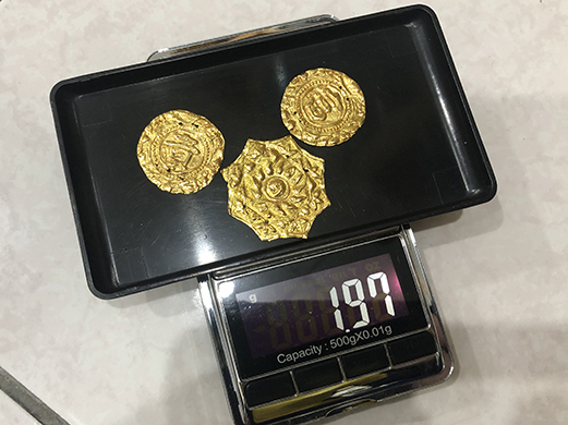 嚴格說來, 這三片 “帽花” 祗算是金箔, 連0.3g都不到…