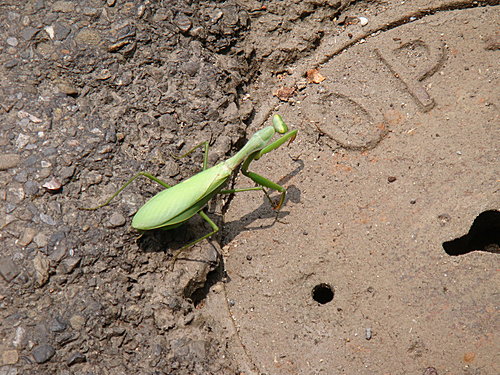馬路上不怕死的螳螂….. (螳螂擋車就是這麼來的)